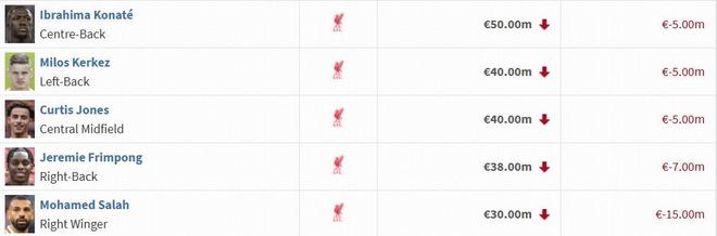 萨拉赫的身价较上期下跌了1500万欧元,和麦卡利斯特并列为跌幅第二高的利物浦球员。而伊萨克、维尔茨的身价均较上期下跌2000万欧元。